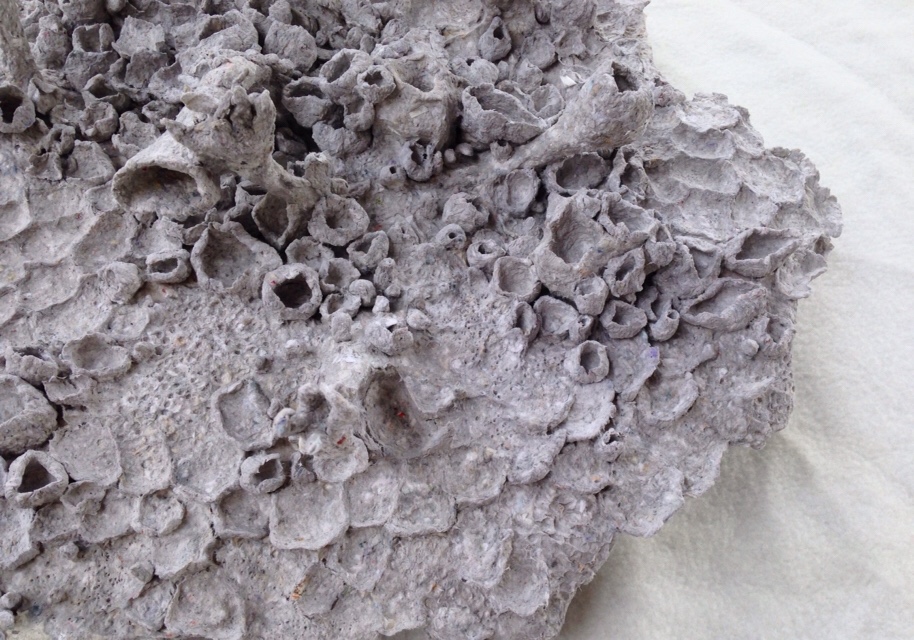 After hours upon hours of obsessively sculpting and cementing primitive looking sea forms crafted from junk mail and ephemera I’ve created a very complex paper mache reef.
