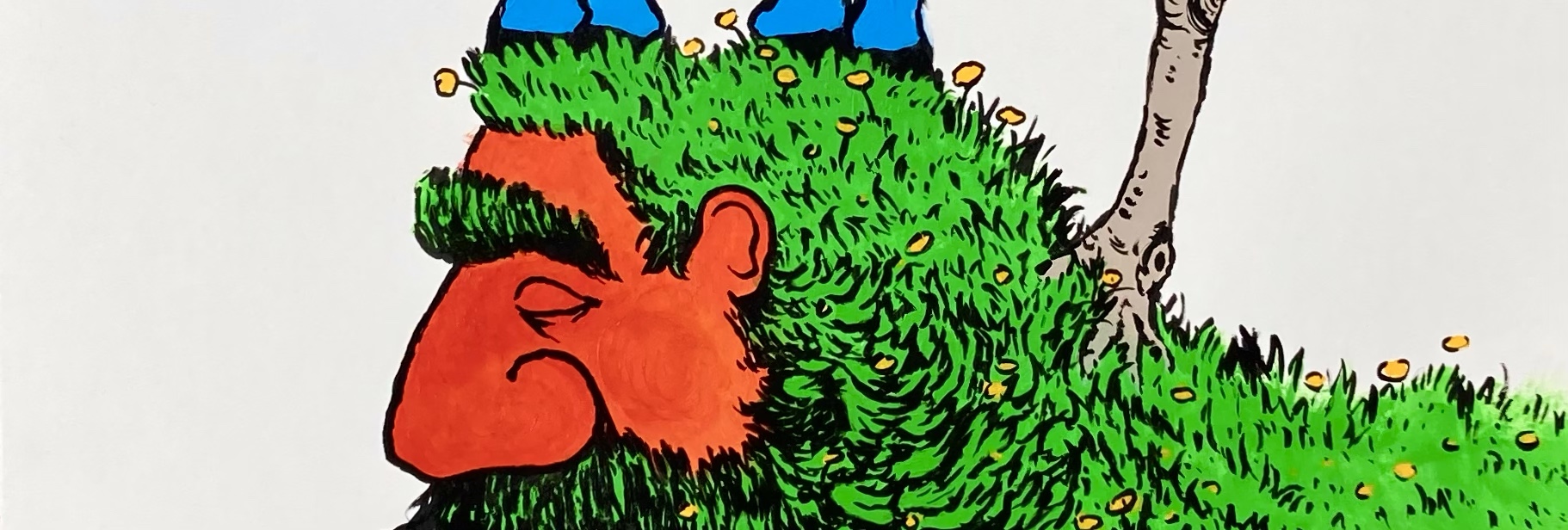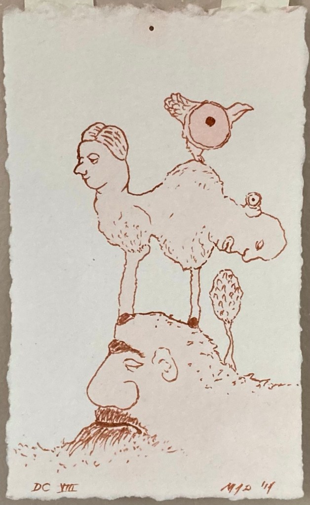 “The Sentinel”- Original painting by MJ Seal. Acrylic on Stonehenge paper, 16”x 26”. C. 2022This piece started off years ago as a tiny Blotograph which has been tacked up to the wall above my art table just begging to be turned into something more.It developed a vaguely medieval look- like maybe something from a coat of arms.